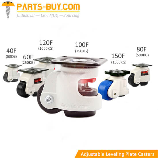 The leveling plate casters are a bit different from stem levelling castors. They have higher load capacity. That is, plate leveling wheels can bear heavy duty machines. Of course, there are also light duty plate leveling castors. The light duty castors can load 50KG. And heavy duty casters with leveling feet can load 1500KG. Available castor models are GD 40F, GD 60F, GD 80F, GD 100F, GD 120S and GD 150F.