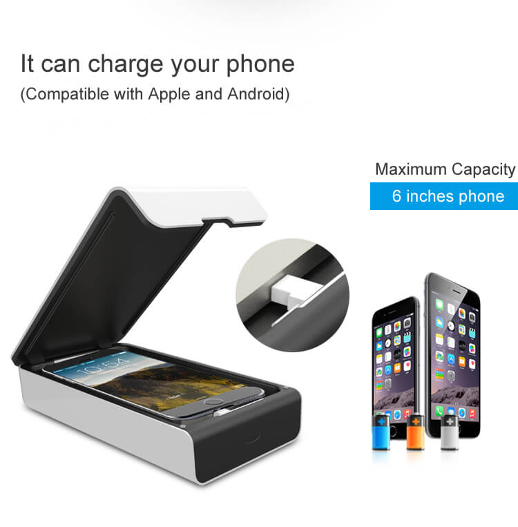 6. 6. High disinfection rate: this mobile phone disinfector can kill bacteria & germs on phone screen thoroughly. The disinfection rate can reach 99.9%.