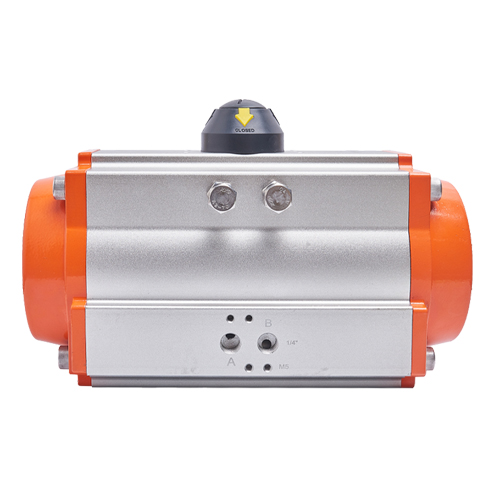 What is a pneumatic rotary actuator? Firstly, AT series pneumatic piston actuator has two types: direct acting and reverse acting air torque actuator. The positive actuator means: while the signal pressure increases, then push rod goes downward. On the contrary, the meaning of reverse acting pneumatic actuator is below. When signal pressure increases, the push rod goes upward. In short, the output displacement of this pneumatic valve actuator is directly proportional to the input air pressure signal. That is to say, the greater the signal pressure, the greater the displacement of the push rod.