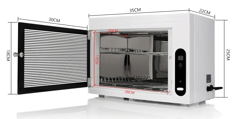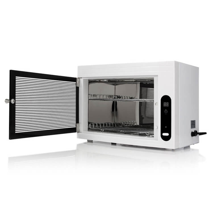 A: Sure. Firstly, if you open the cabinet door, the sterilizer will stop working immediately. Secondly, the door is made of radiation proof glass. So it can protect you from the UV light. In the end, the ozone concentration made by the UVC lamp is not high. Only if wait a few minutes to take the objects after opening the door, the UV sterilizer salon use will absolutely safe for us.